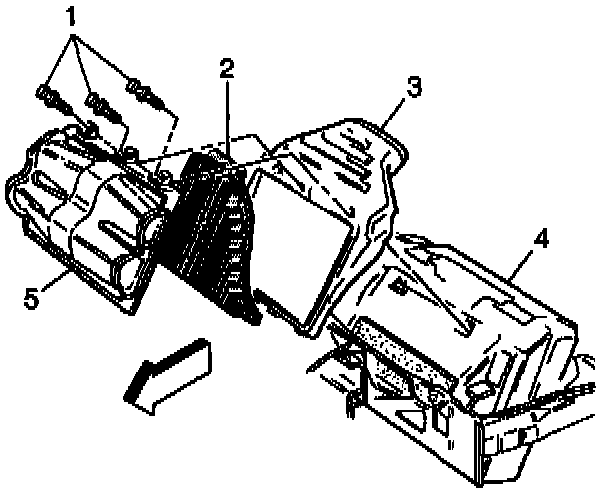 4. Remove the air cleaner assembly (5, 2, 3) from the upper radiator support (4).