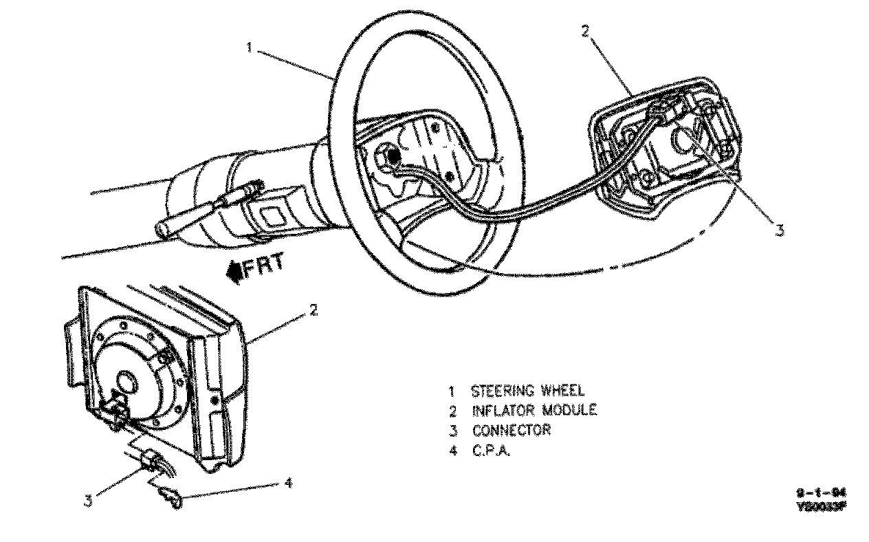 3. CPA and SIR coil electrical connector at inflator module.