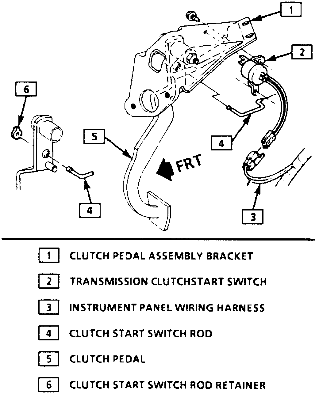 4. Remove clutch start switch to pedal bracket retaining screw, then disconnect electrical connector and remove switch.
