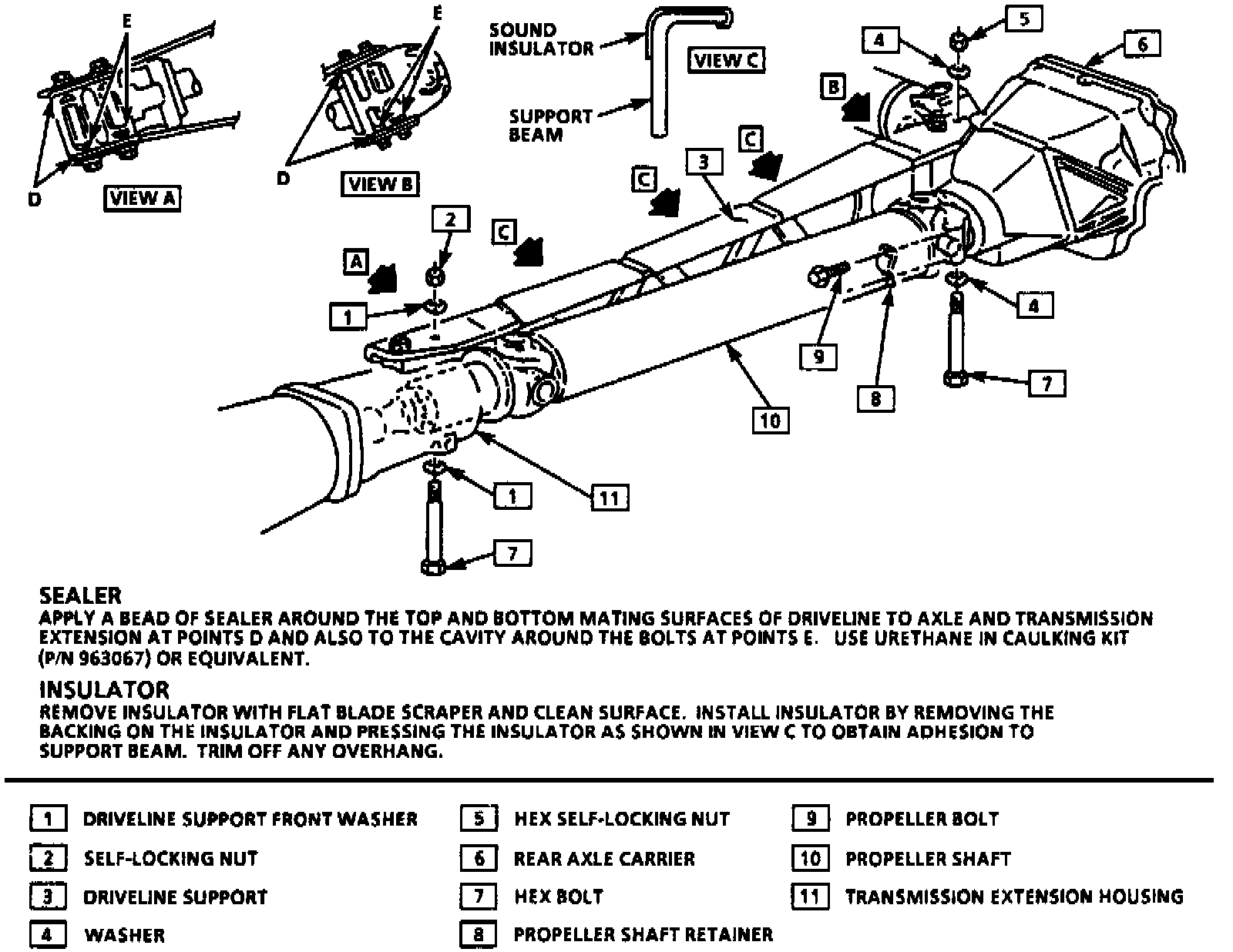Fig. 2 Driveline Support Installation & Sealer Application Locations.: