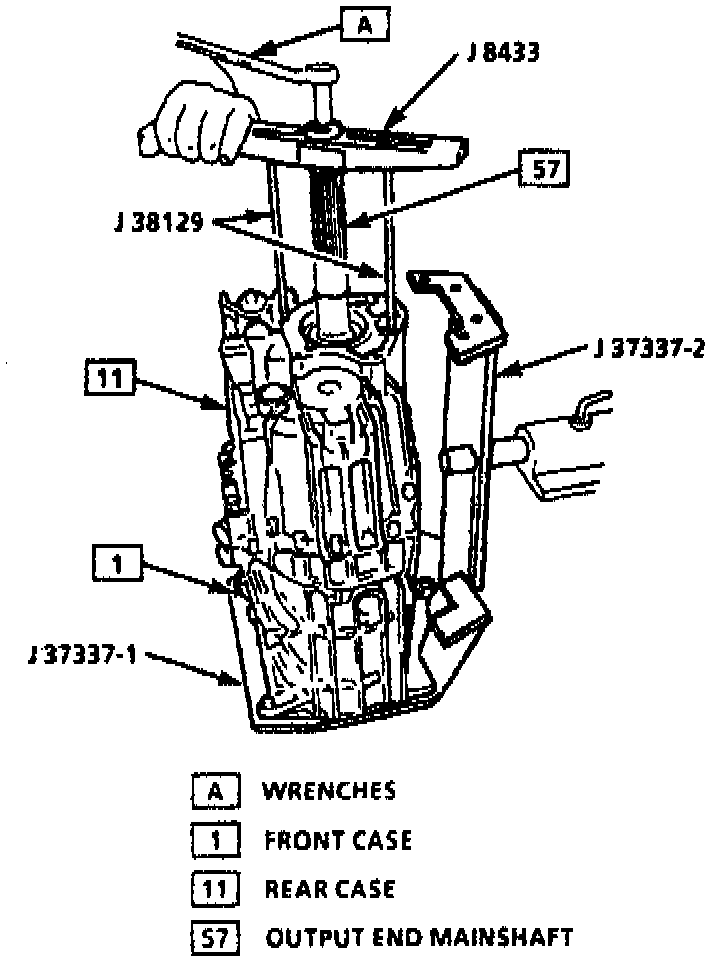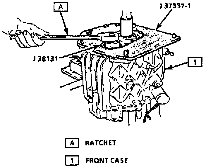 24. Remove front case using tool Nos. J 38129 and J 38433 or equivalents, leaving tool No. J 37337-1 attached.