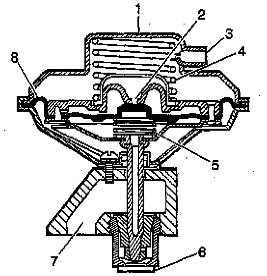 The diaphragm on this EGR valve has an internal vacuum bleed hole which is held closed by a small spring when there is no exhaust backpressure. The amount of vacuum to the valve is controlled by an Powertrain Control Module (PCM) controlled solenoid valve.