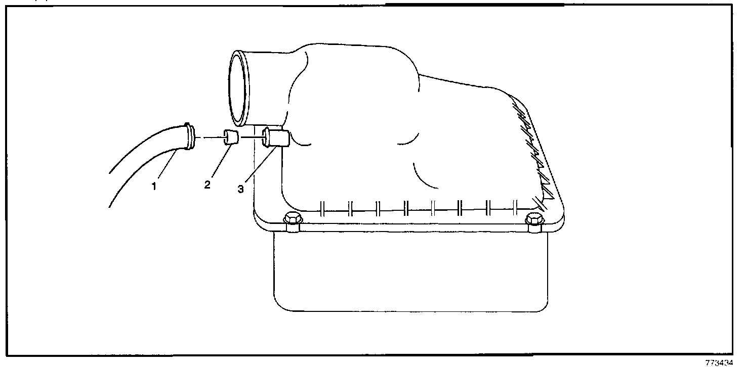 3. Insert the plug (2) into the air cleaner box AIR hose inlet (3).