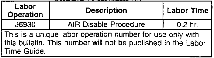 To correct this condition, a Secondary AIR Injection Pump disable procedure has been developed. (It has been determined that the Secondary AIR Injection system is not required to meet emission requirements for these vehicles only.)