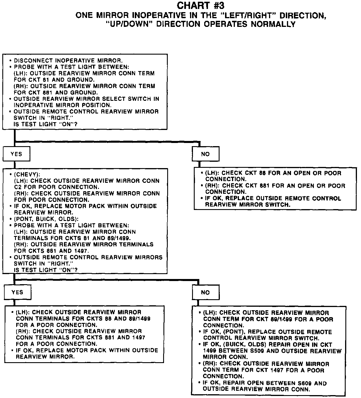Chart #3 One Mirror Inoperative In The LEFT/RIGHT Direction, UP/DOWN Direction Operates Normally: