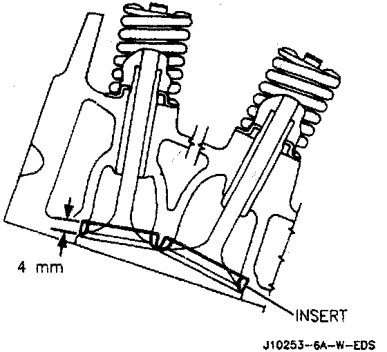 ^ If a burnt valve condition exists, it may be necessary to recondition the valve seat insert. At no time should there be less than 4 mm of valve seat material remaining after reconditioning.