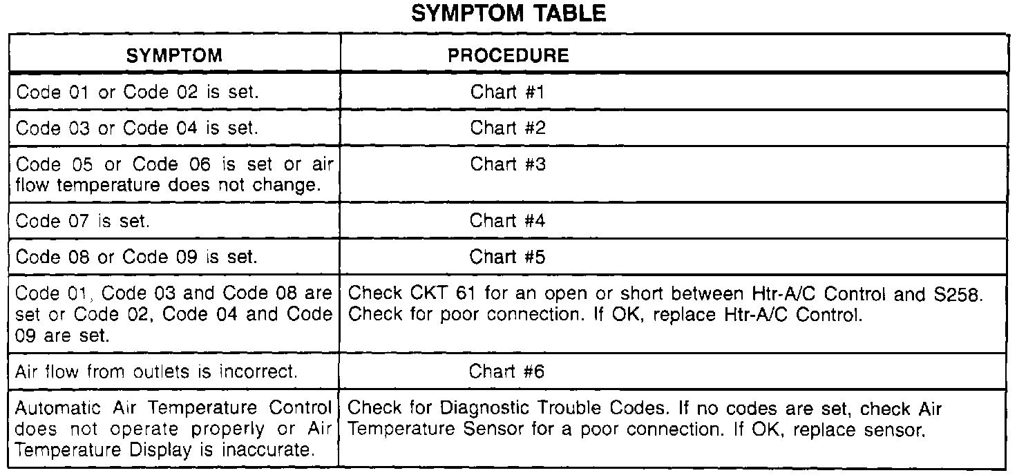 Symptom Table: