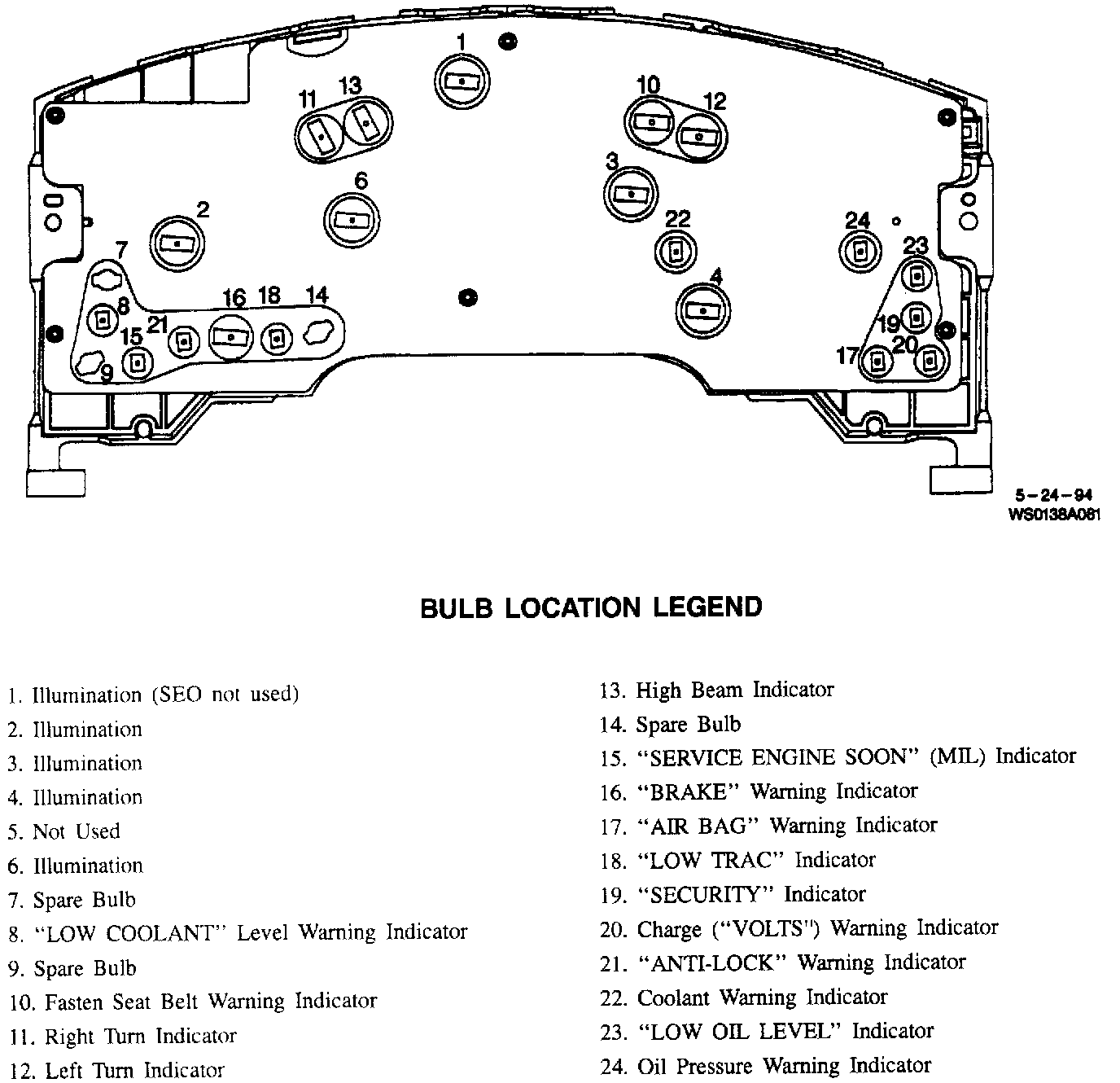 Bulb Location Legend: