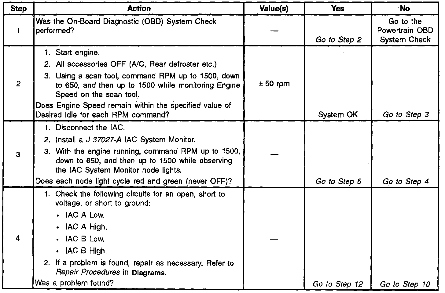 System Check - Idle Air Control (IAC )