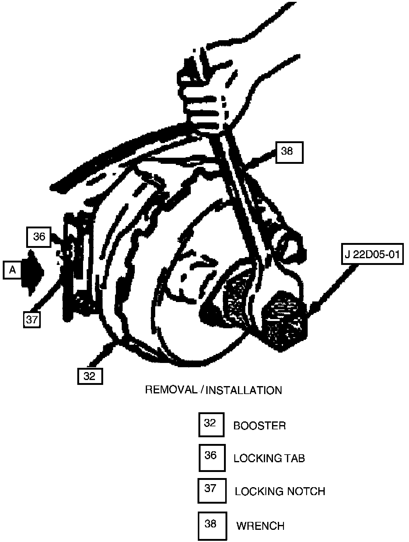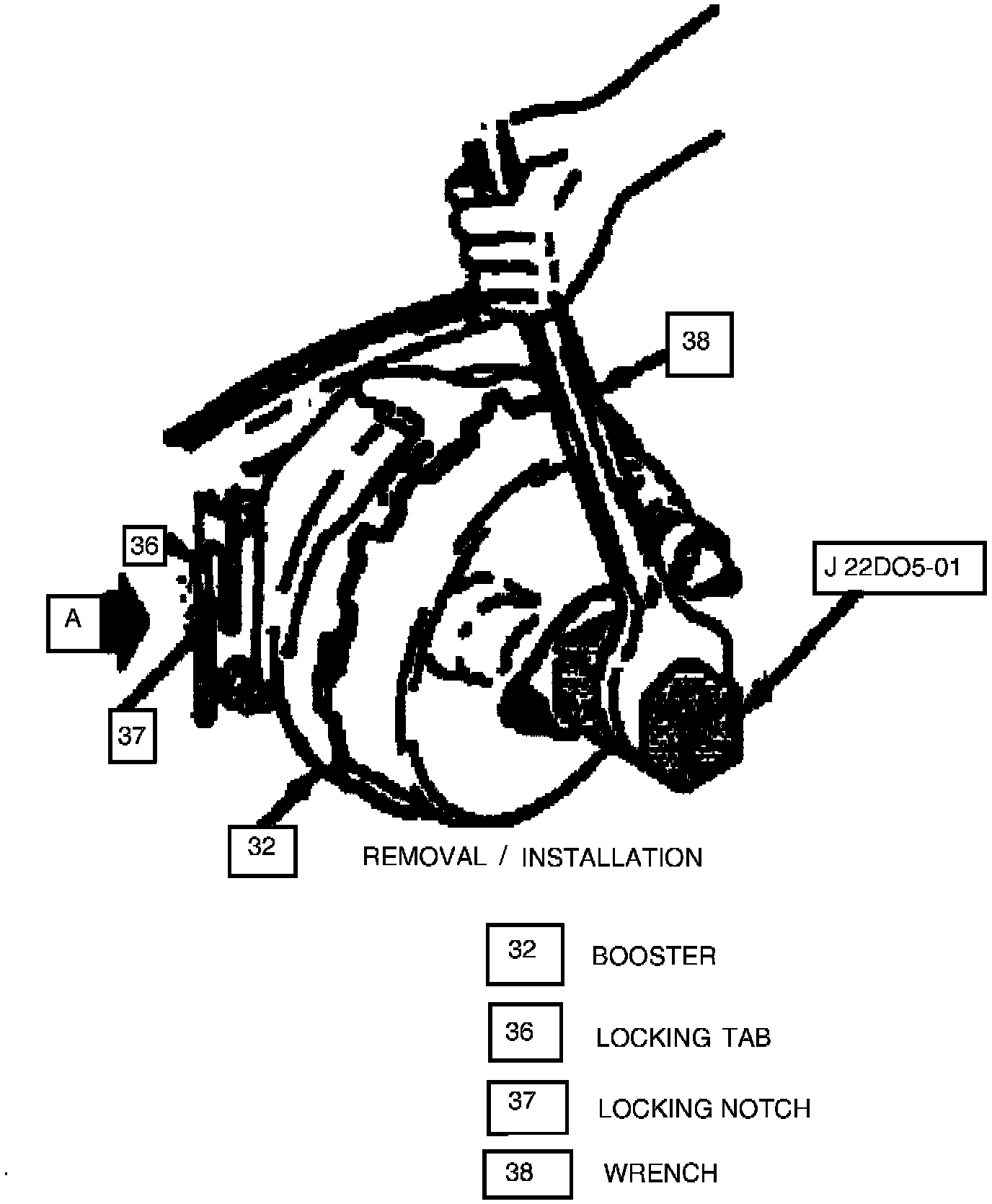 * If locking tab is positioned INCORRECTLY, remove and reinstall Brake Booster per Section 5D of the shop manual.