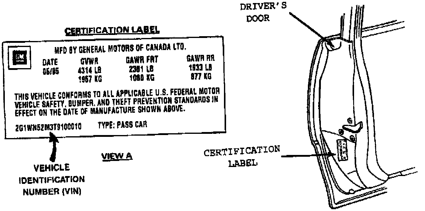 1. Open Driver's door and verify that Vehicle Identification Number (VIN) of the new certification label is the same as the existing label (see illustration for location).