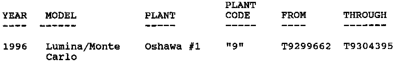 Involved are certain 1996 Chevrolet Lumina and Monte Carlo model vehicles built within the VIN breakpoints as shown.