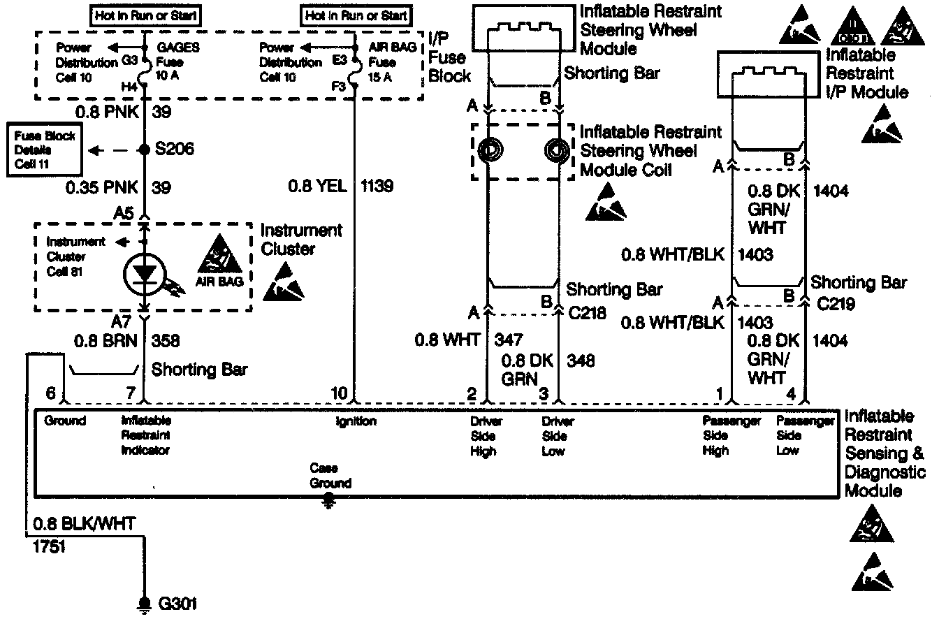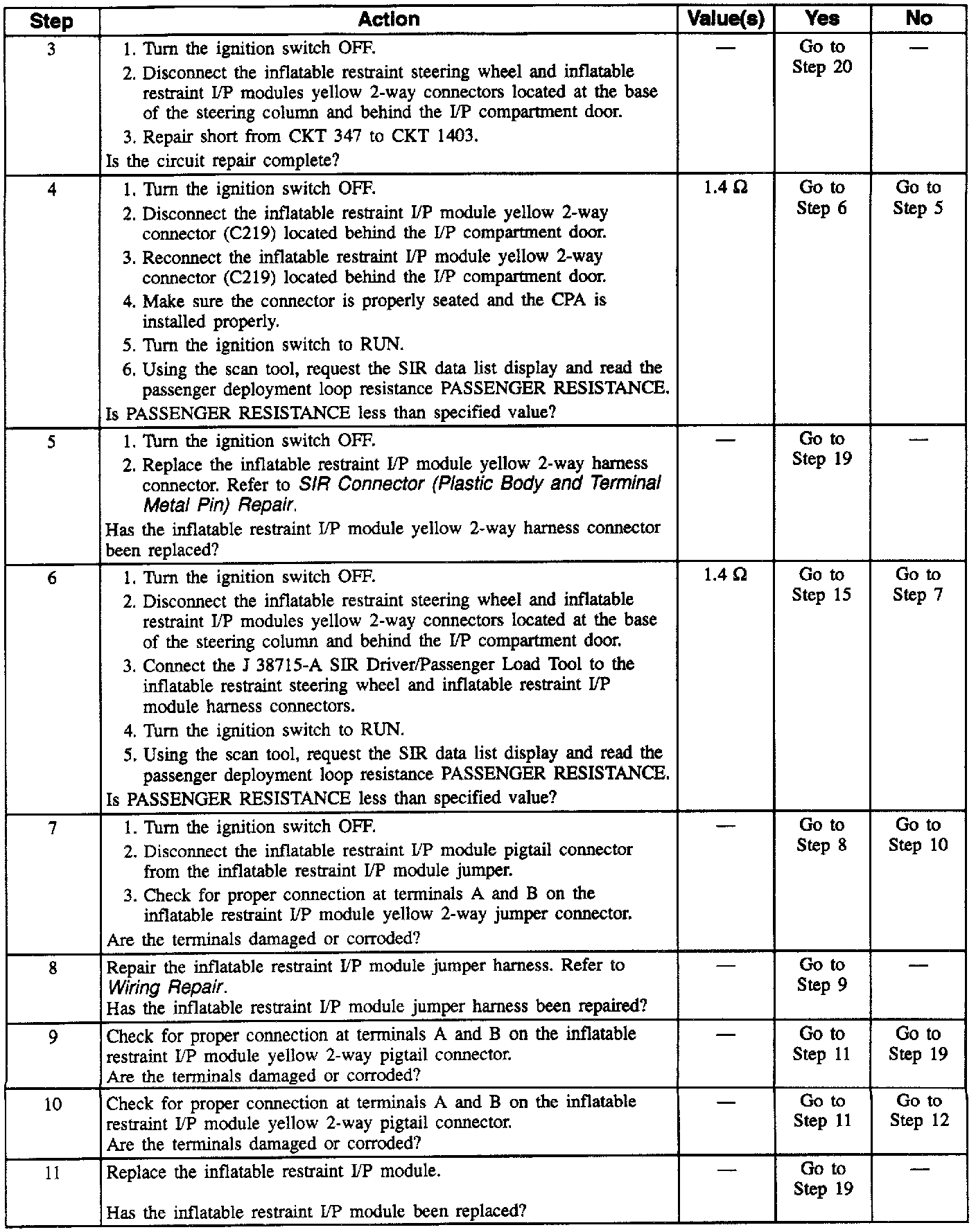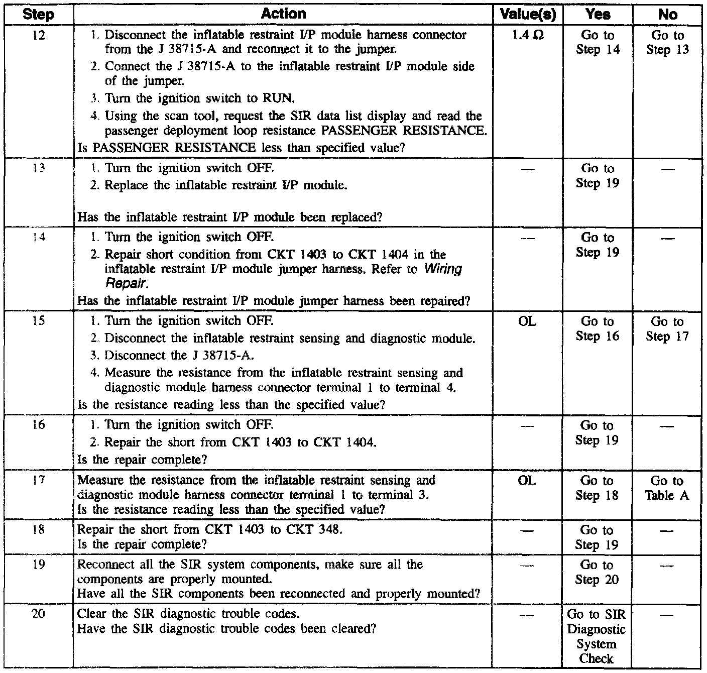 12. This test determines whether the malfunction is due to the inflatable restraint I/P module or the inflatable restraint I/P module jumper.
