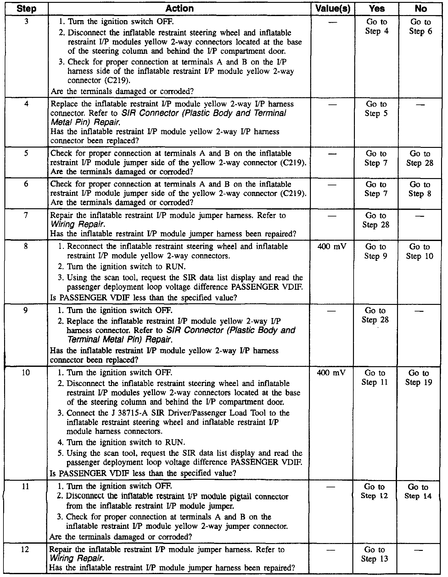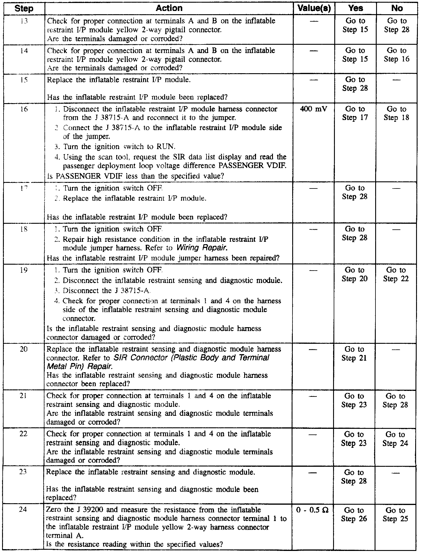 19. This test checks for proper contact and/or corrosion of the inflatable restraint sensing and diagnostic module connector.