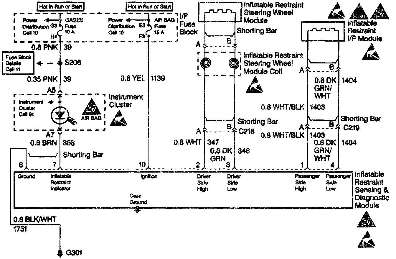^ A poor connection at the inflatable restraint I/P module jumper harness connector terminals A and B.