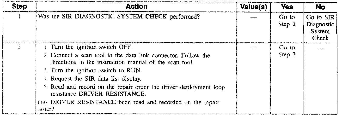 10. This test isolates the malfunction to one side of the inflatable restraint steering wheel module yellow 2-way connector located at the base of the steering column. This is done by substituting the known good resistance of the load tool and then observing if the malfunction is still present.