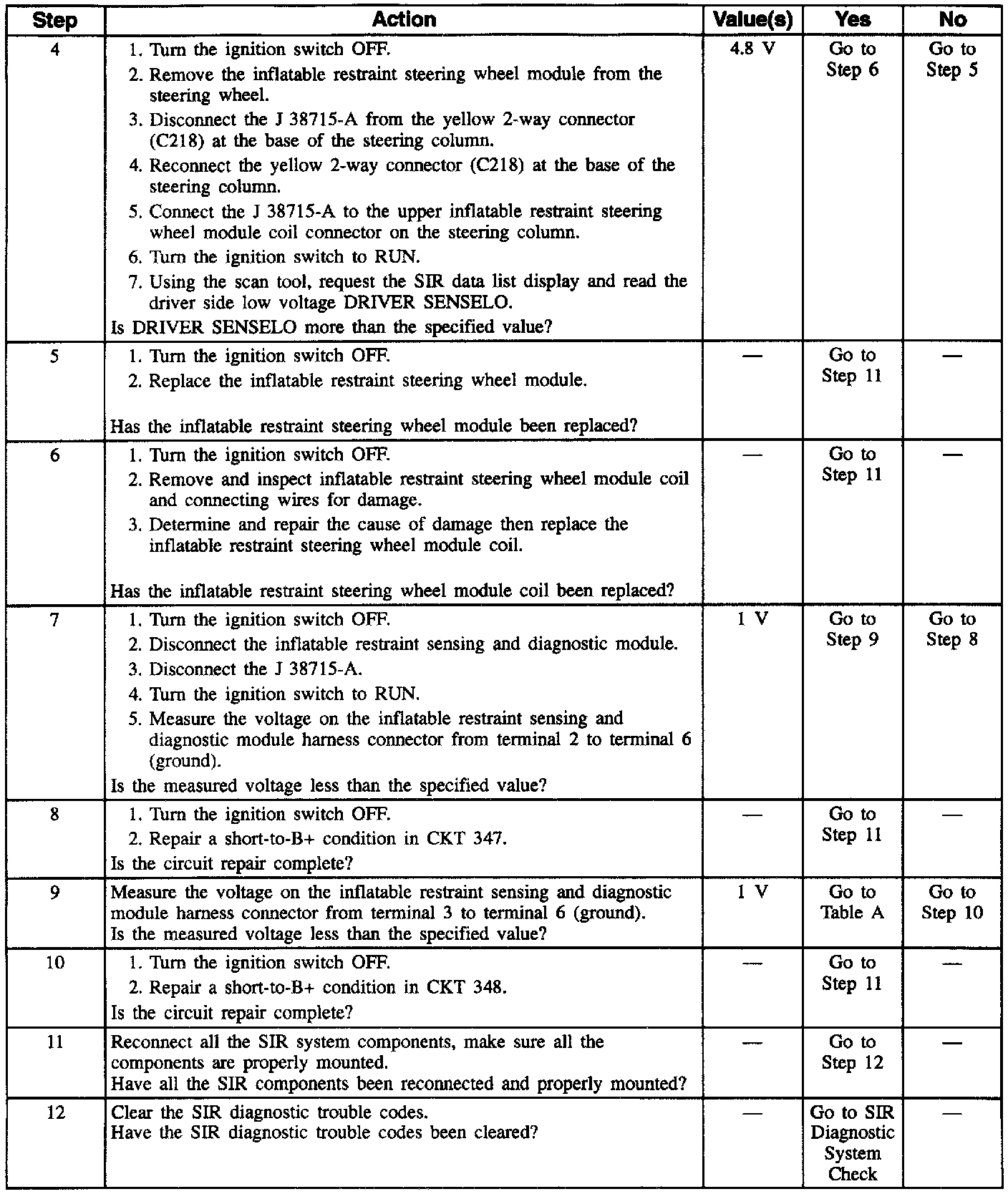 4. This test determines whether the malfunction is in the inflatable restraint steering wheel module coil or the inflatable restraint steering wheel module.