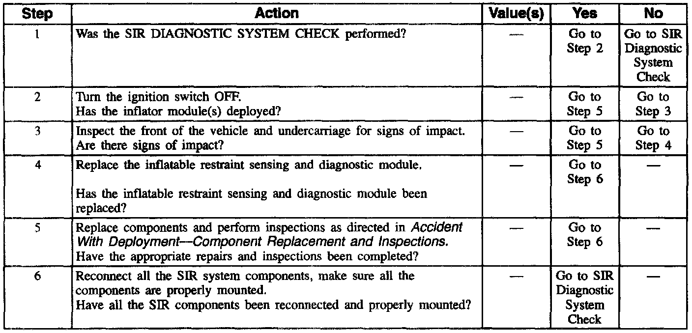 Failure to follow the correct procedure could cause air bag deployment, personal injury, or unnecessary SIR system repairs.