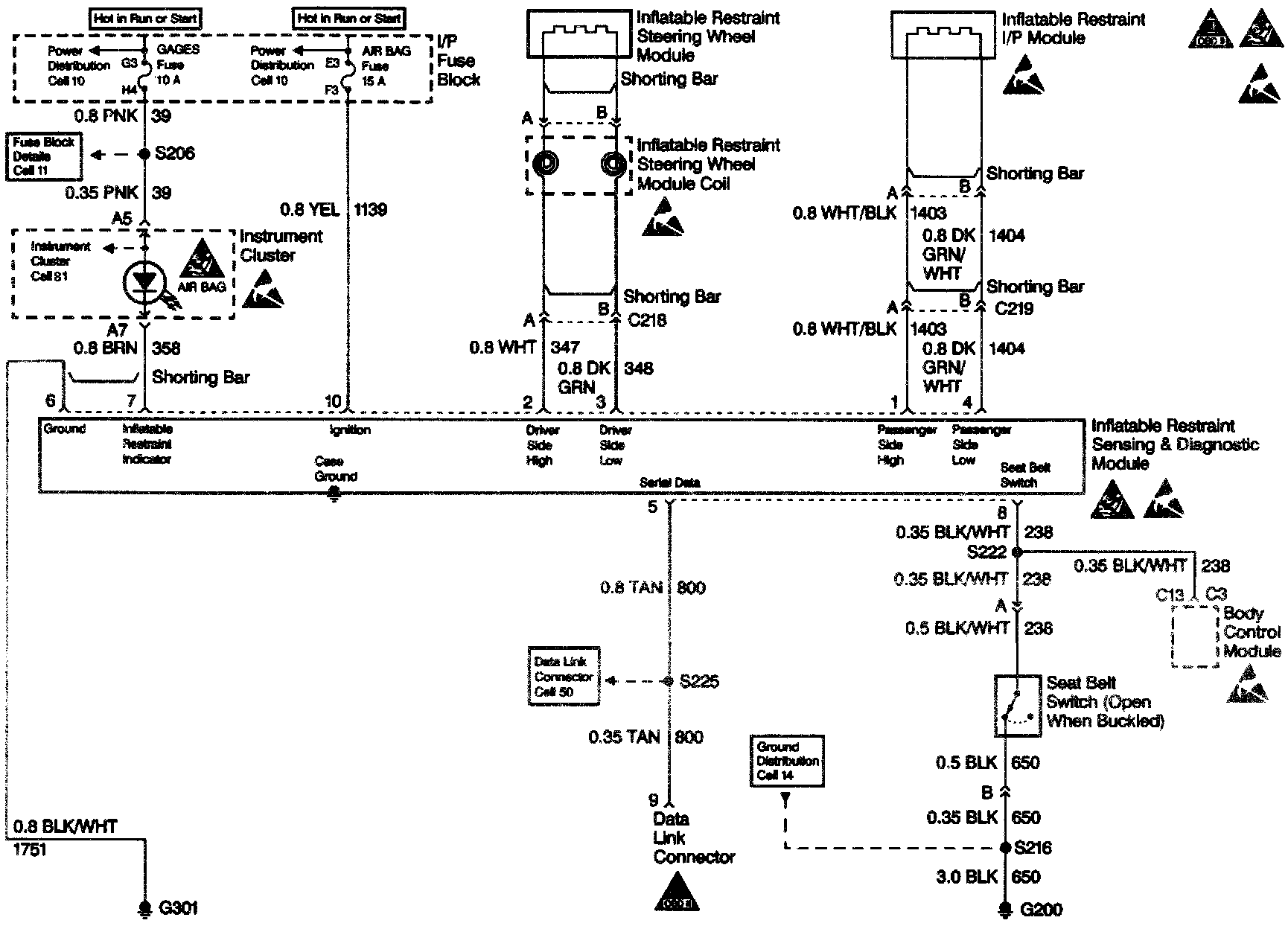 2. When the inflatable restraint sensing and diagnostic module is configured for a serial data controlled warning lamp (smart cluster), DTC B1061 will set.