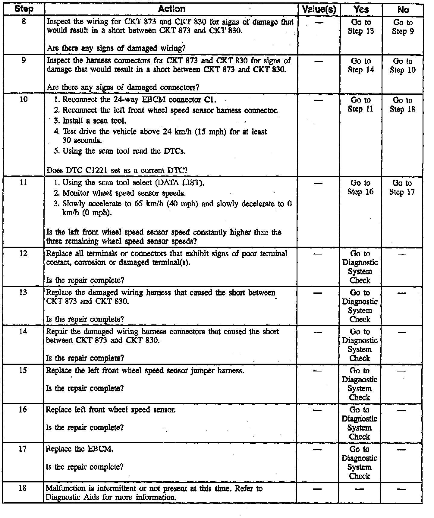 DTC C1221 Left Front Wheel Speed Sensor Input Signal = O (Part 2 Of 2):