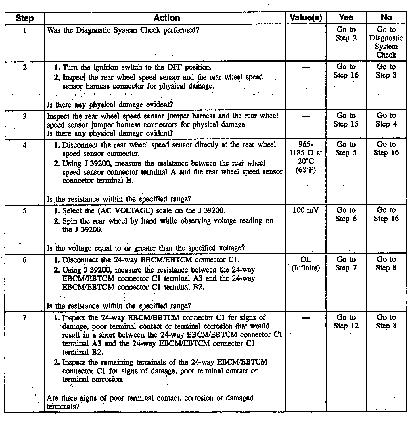 Rear Wheel Speed Sensor Resistance Values: