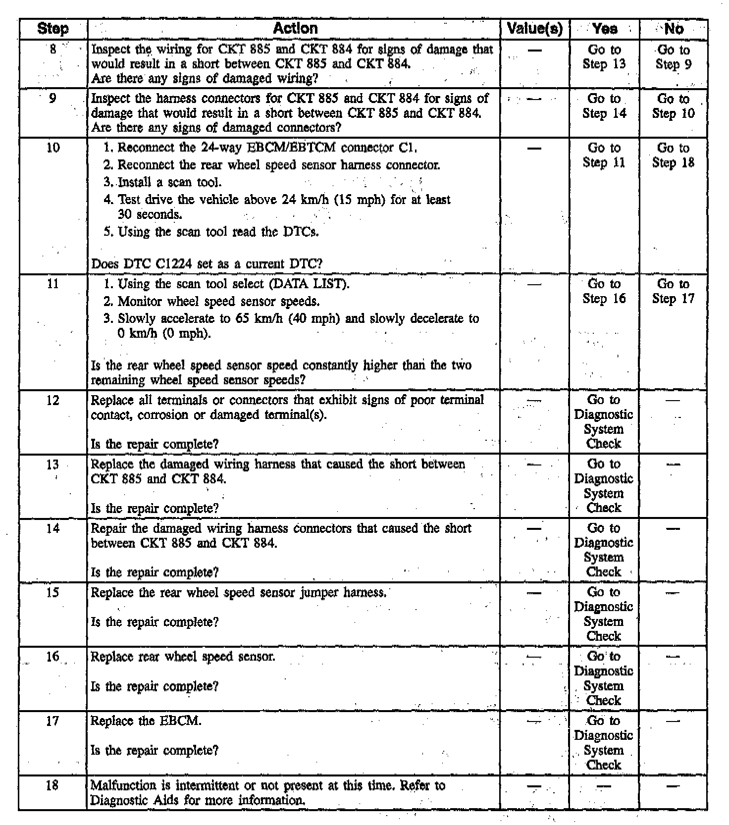 DTC C1224 Rear Wheel Speed Sensor Input Signal = 0 (Part 2 Of 2):