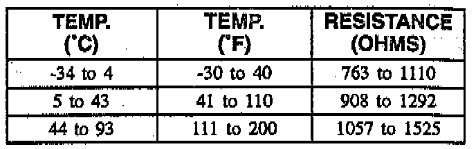 This table contains resistance values for the rear wheel speed sensors at varying temperatures for use in diagnosis. The values are approximate and should be used as a guideline for diagnosis.