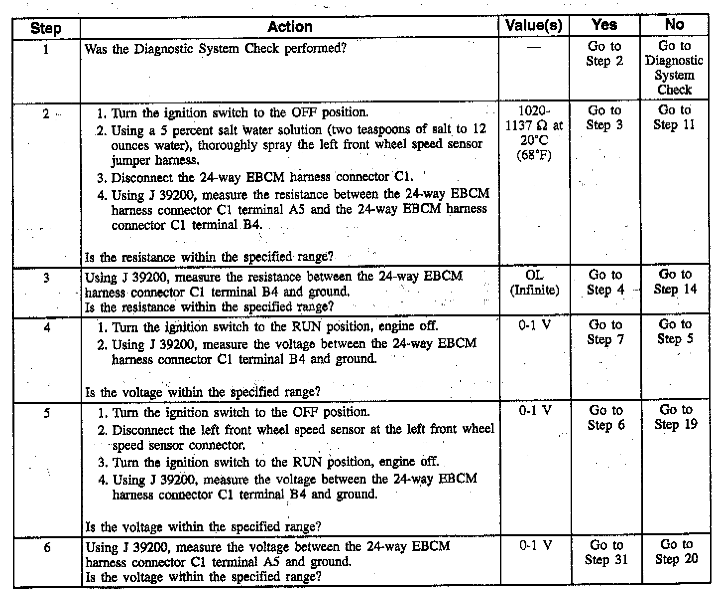 Front Wheel Speed Sensor Resistance Values: