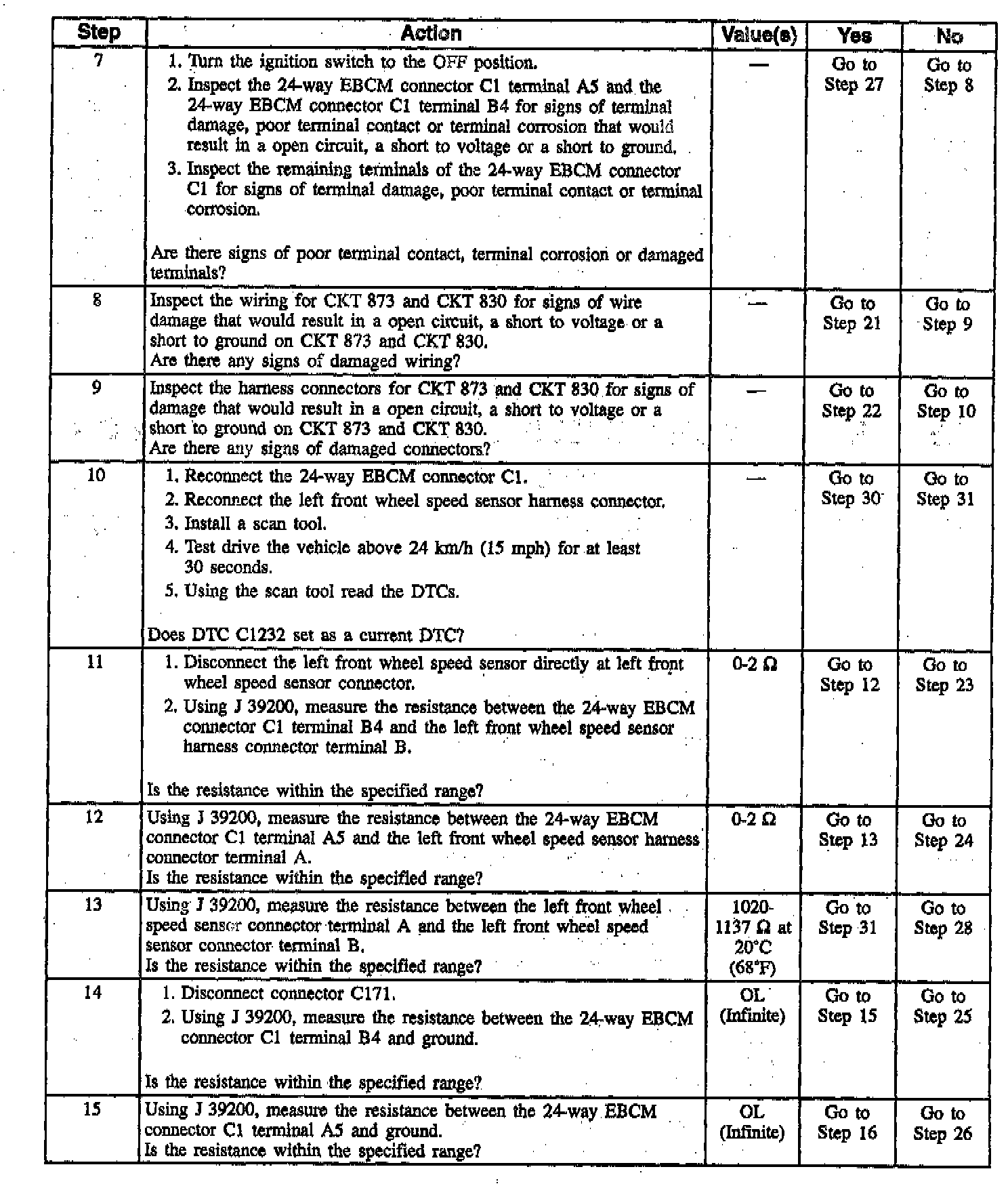 DTC C1232 Left Front Wheel Speed Sensor Circuit Open Or Shorted (Part 4 Of 4):