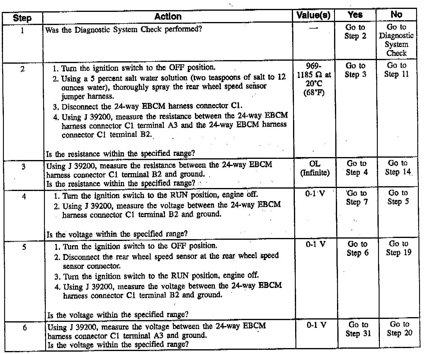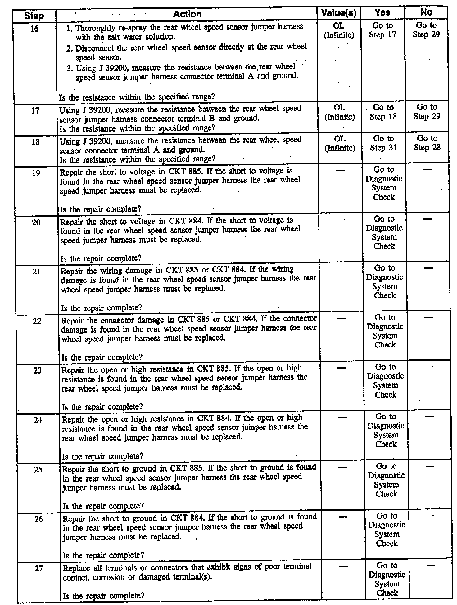 Rear Wheel Speed Sensor Resistance Values: