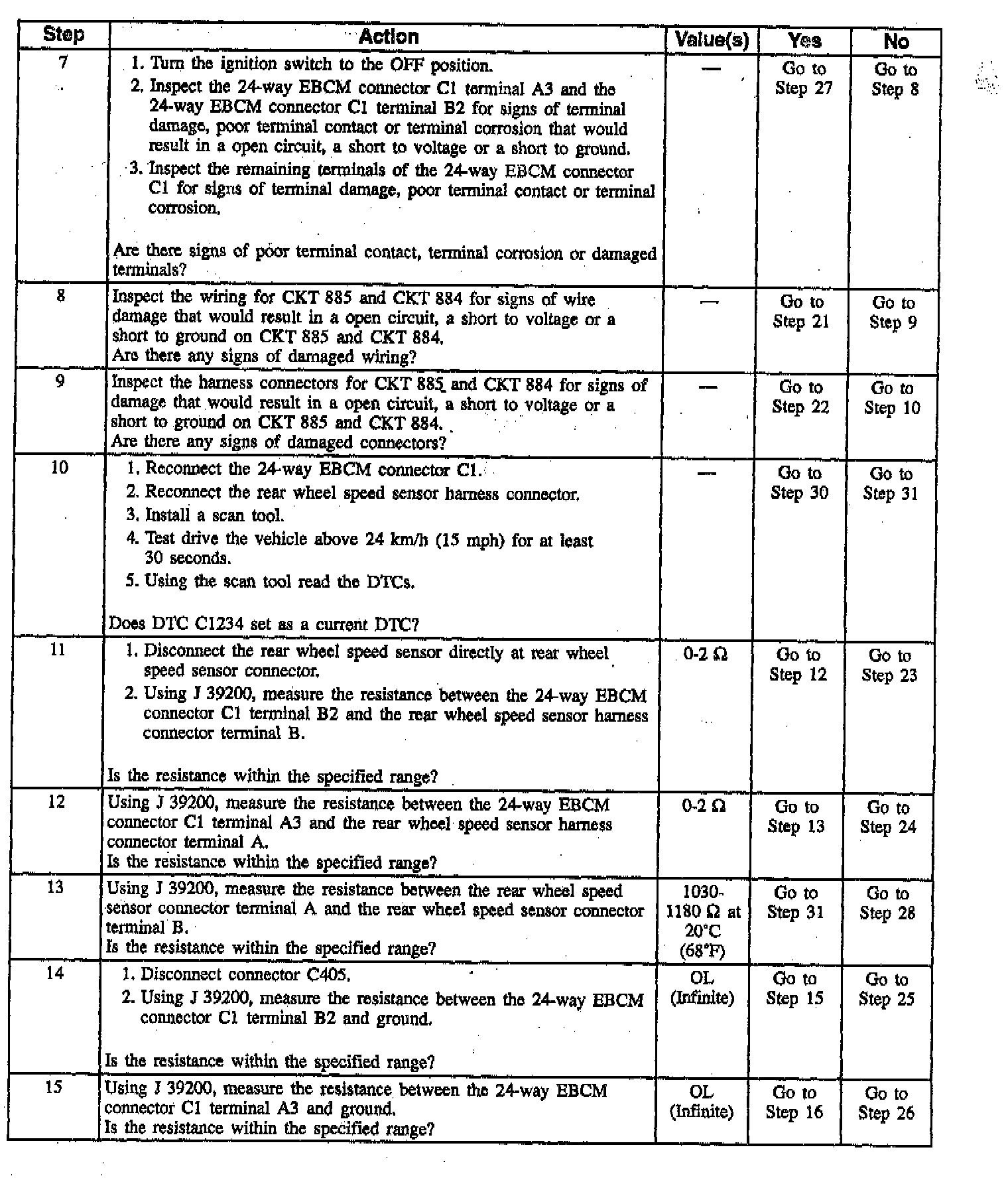 DTC C1234 Rear Wheel Speed Sensor Circuit Open Or Shorted (Part 4 Of 4):