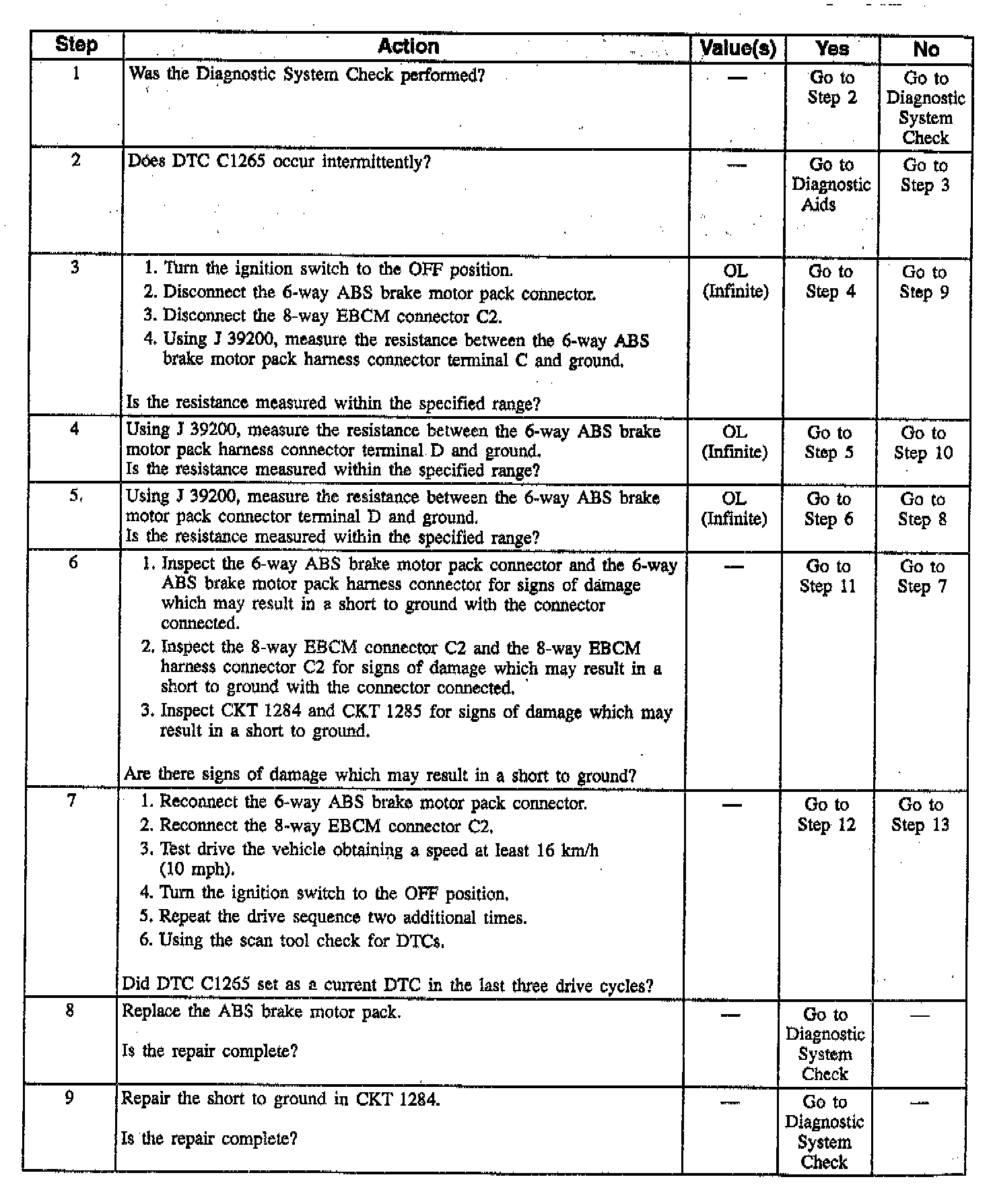 DTC C1265 Rear ABS Motor Circuit Shorted To Ground (Part 2 Of 2):