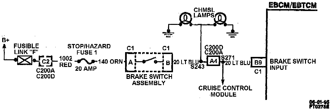 An intermittent malfunction may be caused by a poor connection, rubbed through wire insulation, or a wire that is broken inside the insulation. The frequency of the malfunction can be checked by using the enhanced diagnostic function of the scan tool, as described in Scan Tool Diagnostics in the scan tool manual. Any circuitry that is suspected of causing the intermittent complaint should be thoroughly checked for backed out terminals, improper mating, broken locks, improperly formed or damaged terminals, poor terminal to wiring connections or physical damage to the wiring harness. Also, verify proper brake switch operation using the data list of the scan tool. As the brake is applied, the data list should display the brake switch on within 25 mm (1.0 inch) of brake pedal travel.