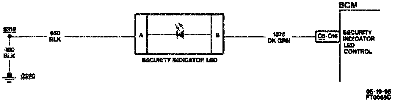 The BCM provides an output on circuit 1376 to the Security L.E.D. (if installed).