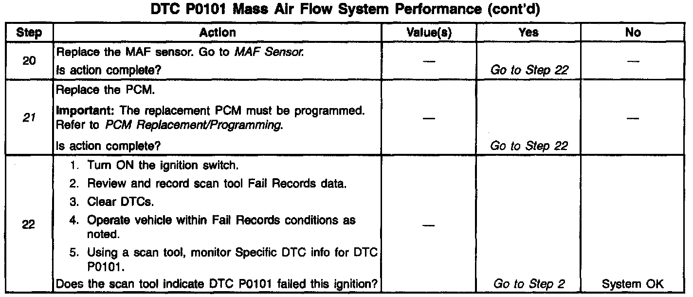 If DTC P0101 cannot be duplicated, the information included in the Fail Records data can be useful in determining vehicle mileage since the DTC was last set. This may assist in determining how often the DTC sets.