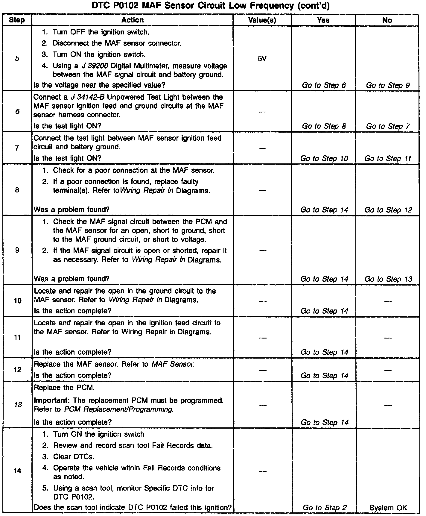 Number(s) below refer to the Step number(s) on the Diagnostic Table: