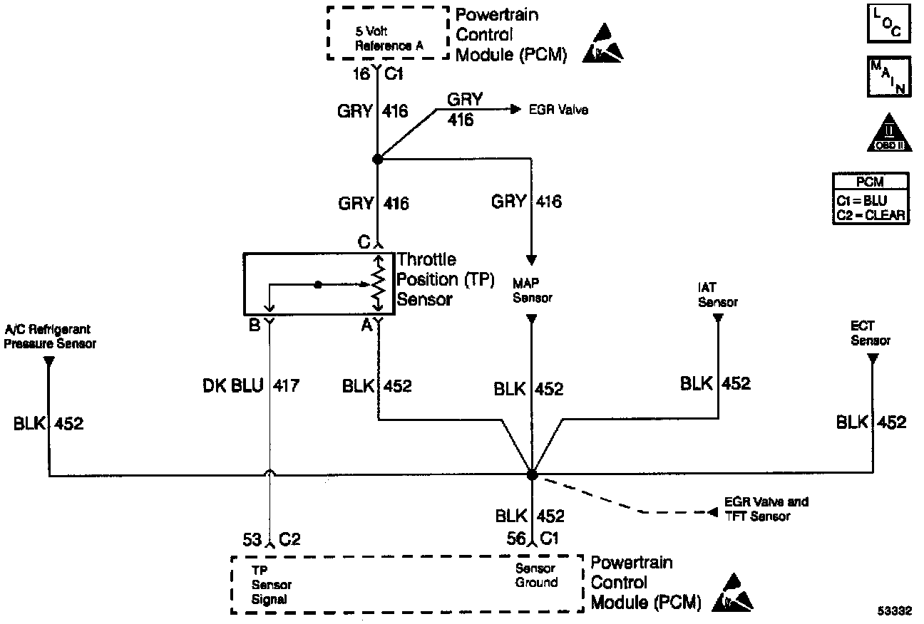 - Damaged harness. Inspect the wiring harness for damage. If the harness appears to be OK, observe the TP sensor display on the scan tool while moving connectors and wiring harnesses related to the TP sensor A change in the display will indicate the location of the fault.