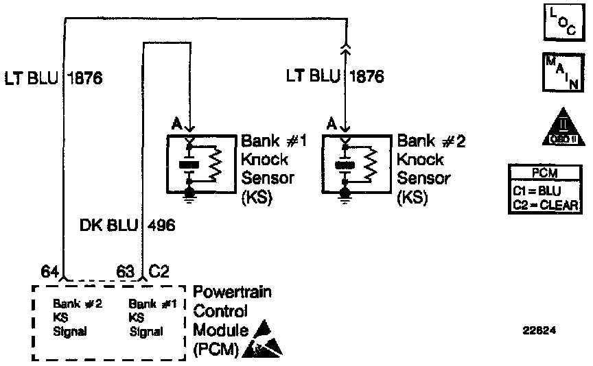 The knock sensors are used to detect engine detonation, allowing the PCM to retard Ignition Control (IC) spark timing based on the Knock Sensor (KS) signal being received. The knock sensors produce an AC signal which rides on a 5 volts DC signal supplied by the PCM. The signal amplitude and frequency is dependent upon the amount of knock being experienced.