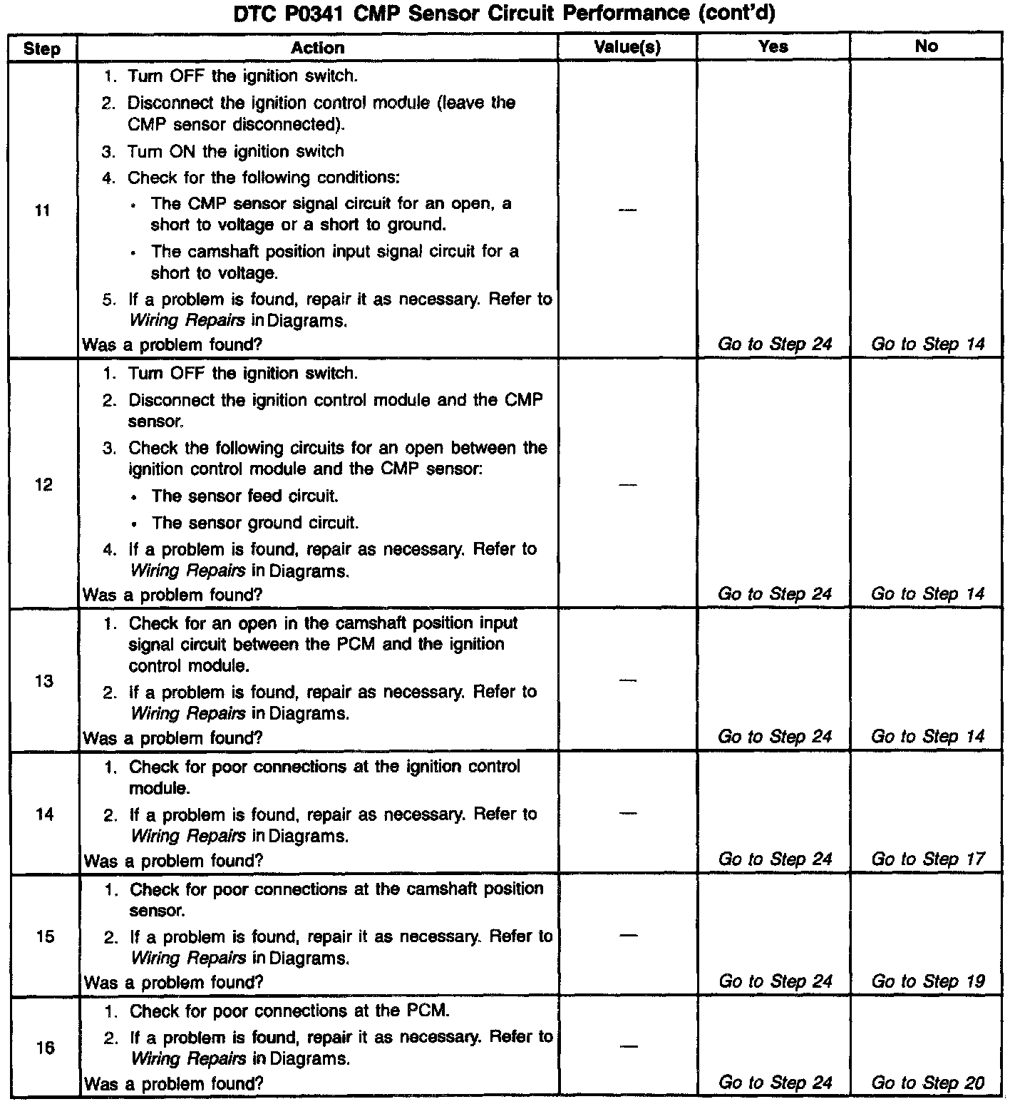 Number(s) below refer to the step number(s) on the Diagnostic Table.