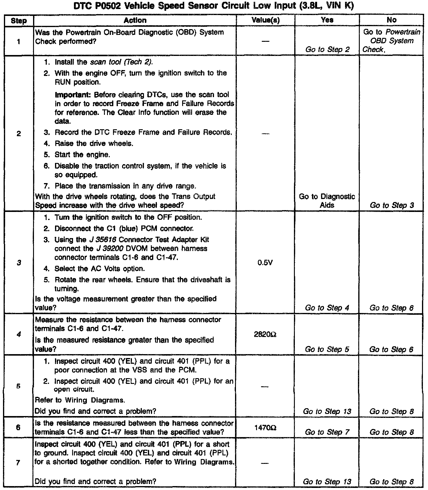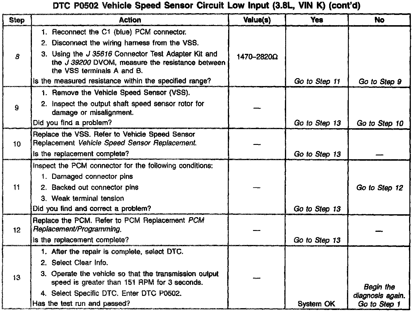 - Incorrect VSS calibration may set DTC P0502. Refer to Service bulletins to ensure that the calibration is current.