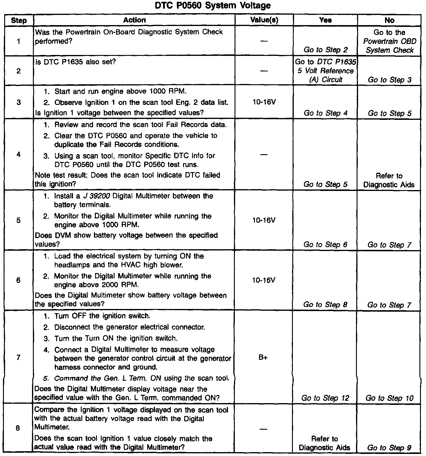 It DTC P0560 cannot be duplicated, reviewing the Fail Records vehicle mileage since the diagnostic test last failed may help determine how often the condition that caused the DTC to be set occurs. This may assist in diagnosing the condition. For complete information and additional diagnostics for the vehicle charging system, refer to Charging System.