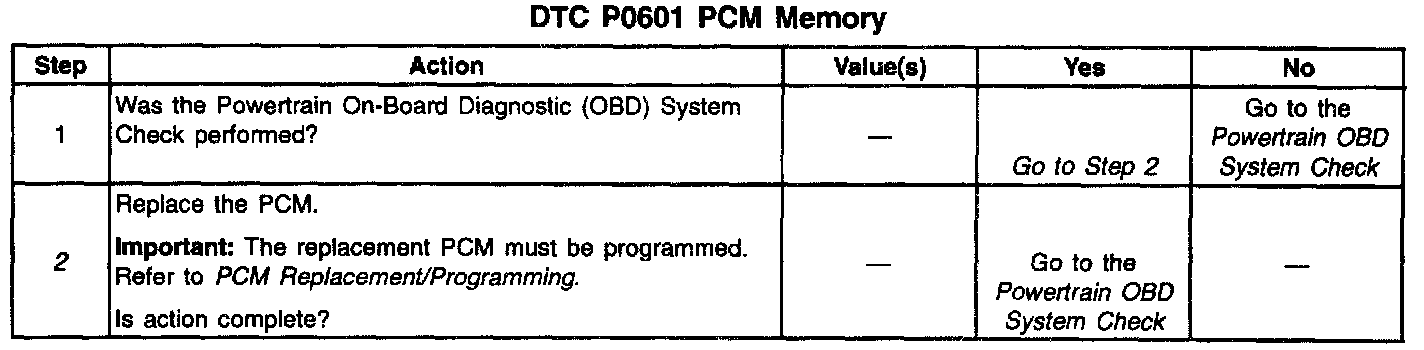 DTC P0601 indicates that the contents of the EEPROM have changed since the PCM was programmed. The only possible repair is PCM replacement. Remember to program the replacement PCM with the correct software and calibration for the vehicle.