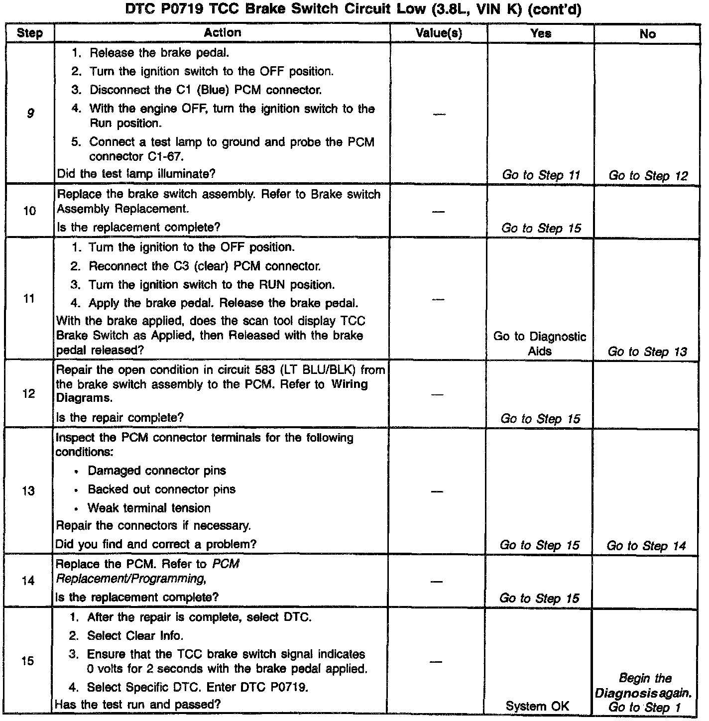 9. This step verifies that circuit 583 (LT BLU/BLK) is functioning normally at the PCM.