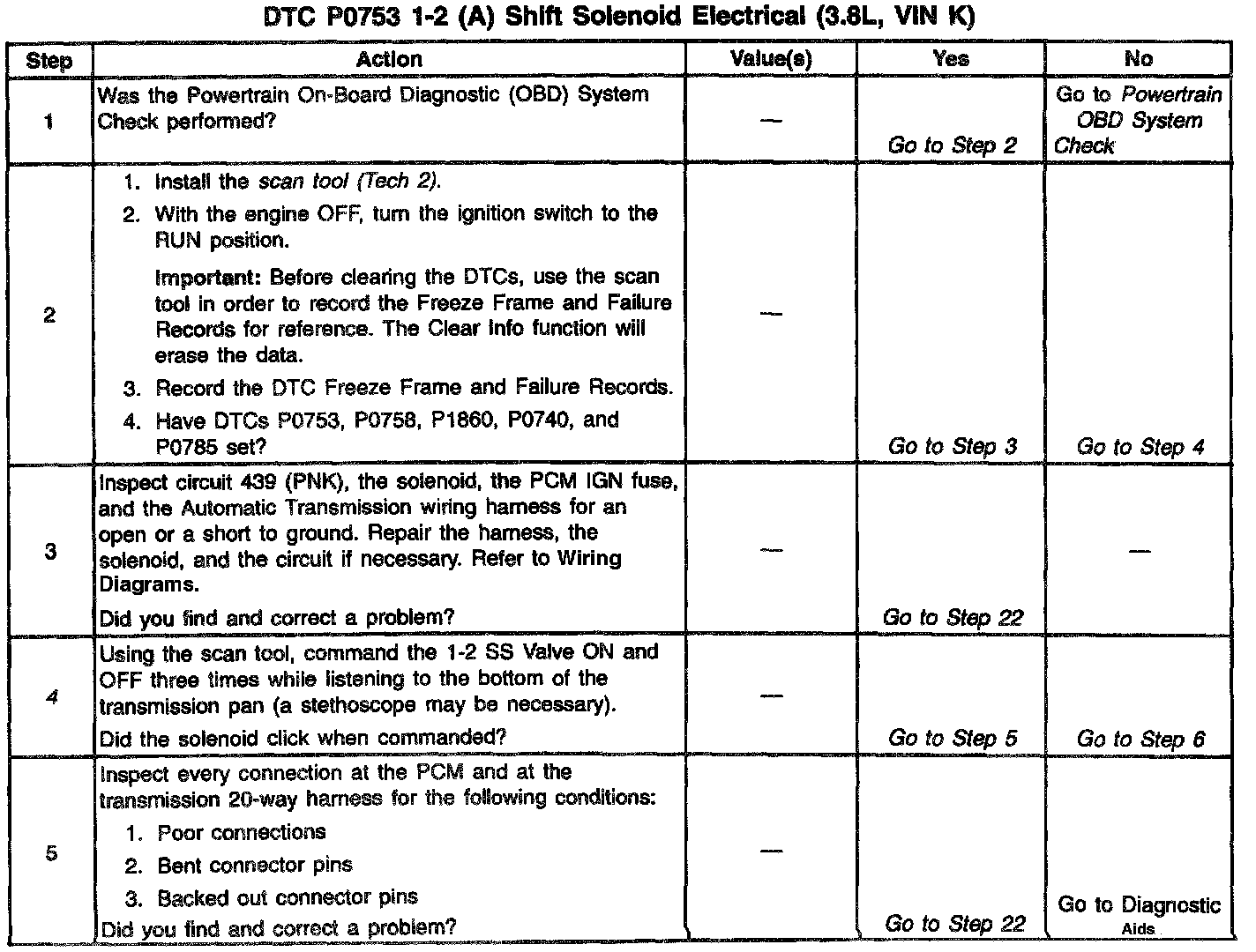 If the PCM detects a continuous open or a short to ground in the 1-2 SS Valve circuit or the 1-2 SS Valve, then DTC P0753 sets. DTC P0753 is a type A DTC.