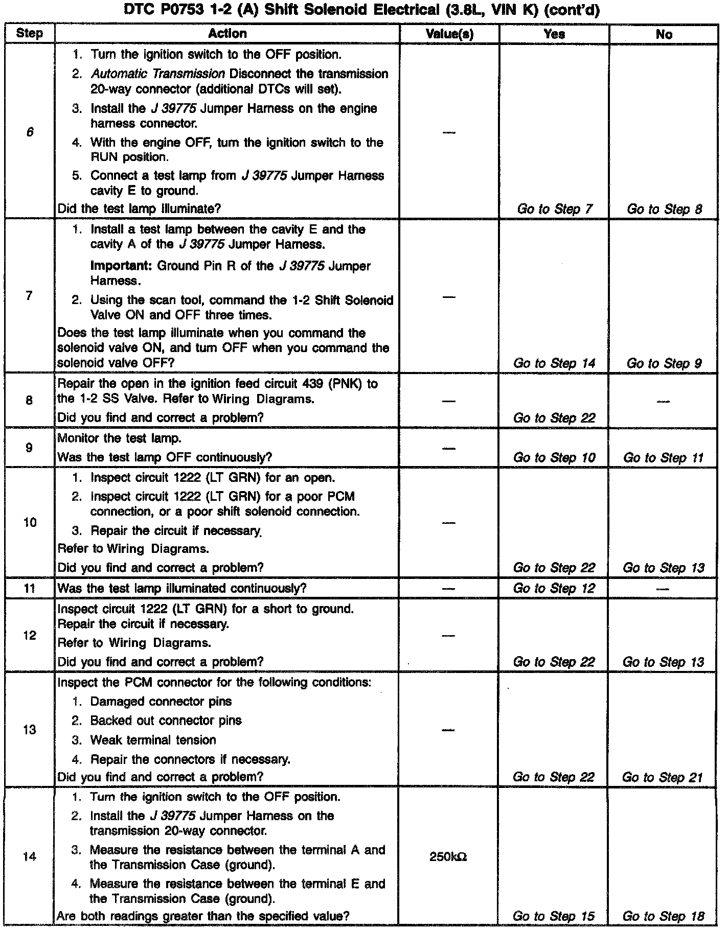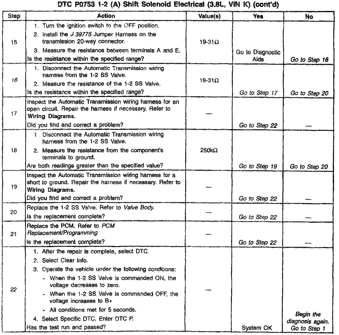 4. This step verifies that the 1-2 SS Valve and the Automatic Transmission wiring harness are functioning normally.