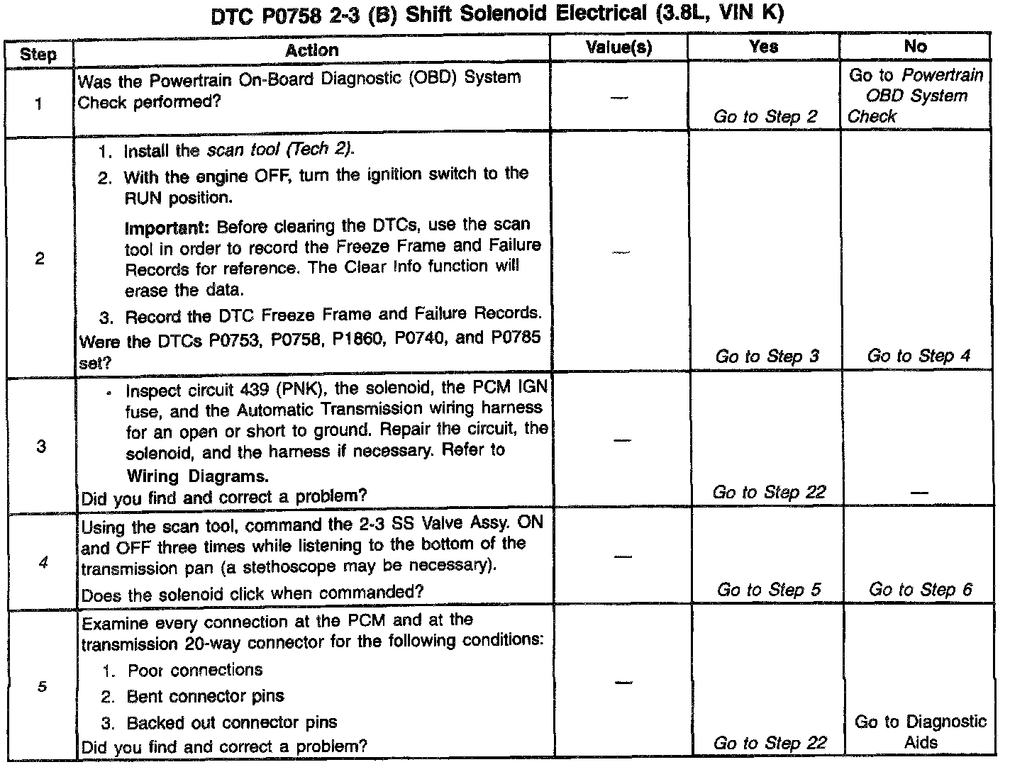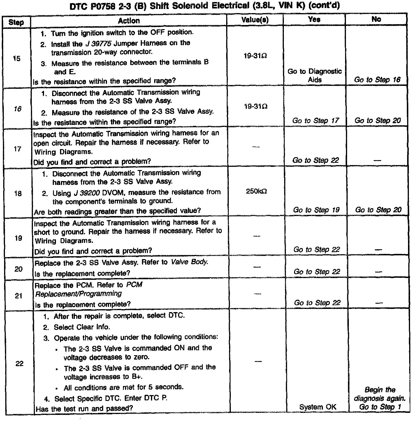 4. This step verities that the 2-3 SS Valve and the Automatic Transmission wiring harness are functioning normally.