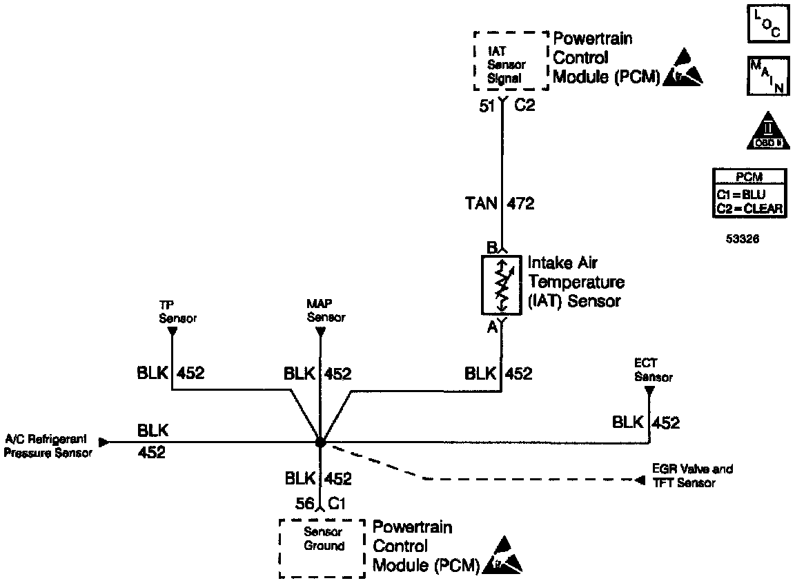 - If the harness appears to be OK, observe the IAT display on the scan tool while moving connectors and wiring harnesses related to the IAT sensor. A change in the IAT display will indicate the location of the fault.