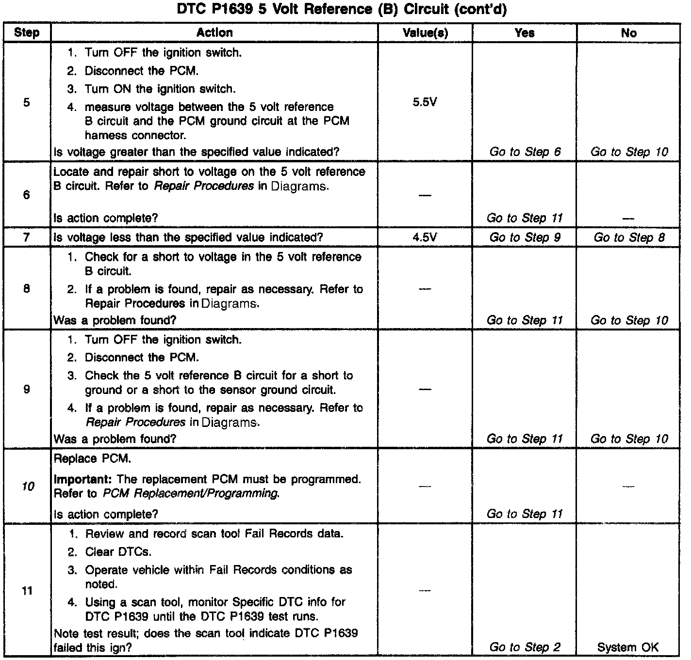 - The PCM detects a voltage out of tolerance condition on the 5 Volt Reference B circuit.