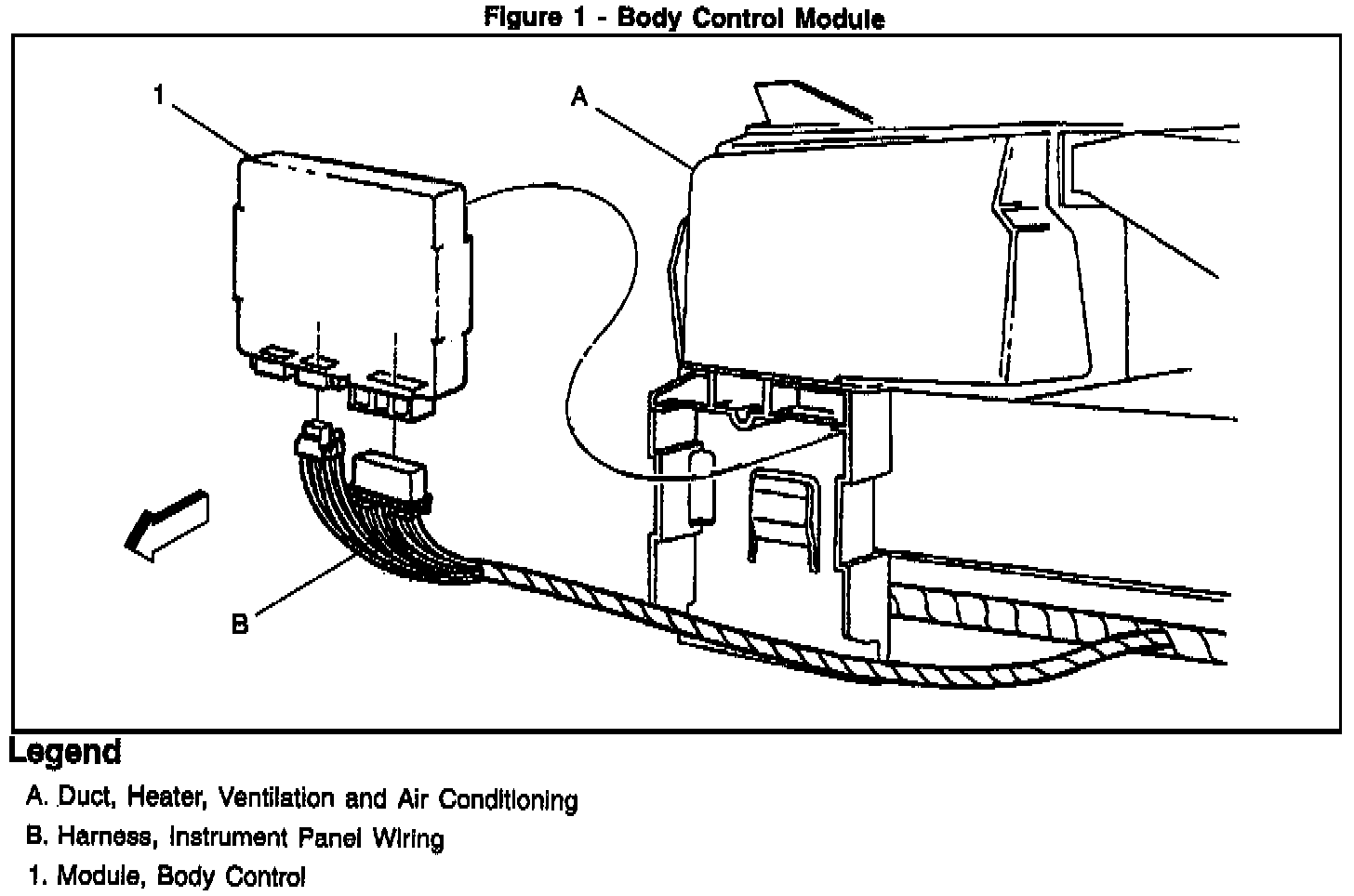 2. Unsnap BCM from HVAC duct bracket. Lower BCM