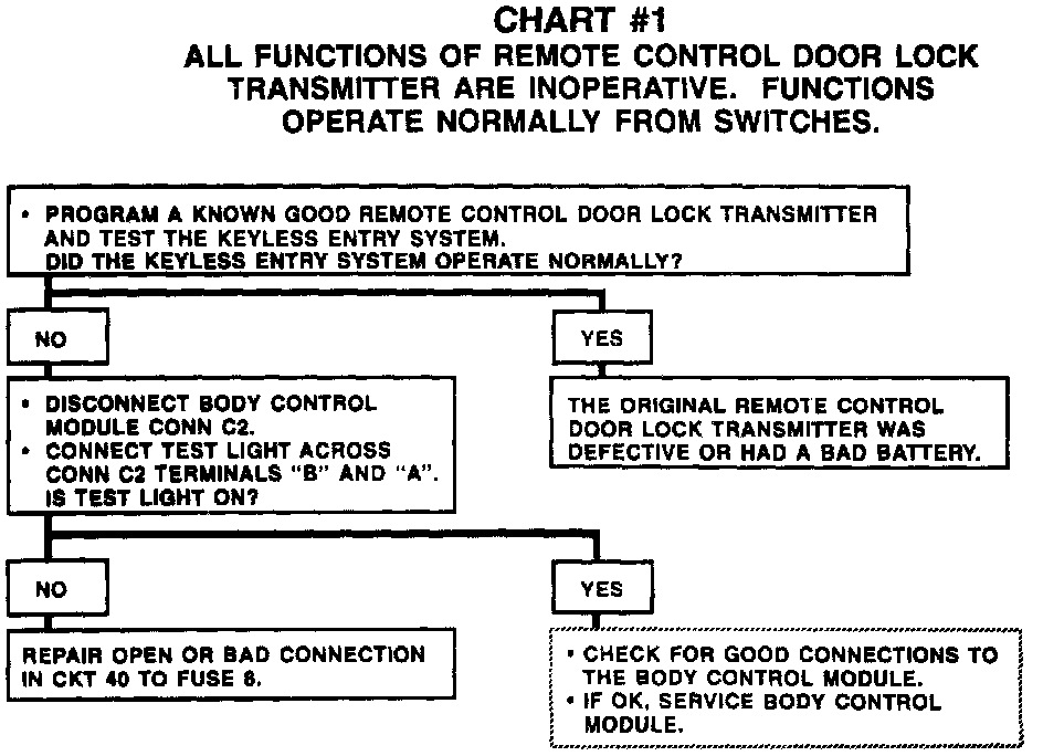 Chart #1 All Functions Of Remote Control Door Lock Transmitter Are INOP: